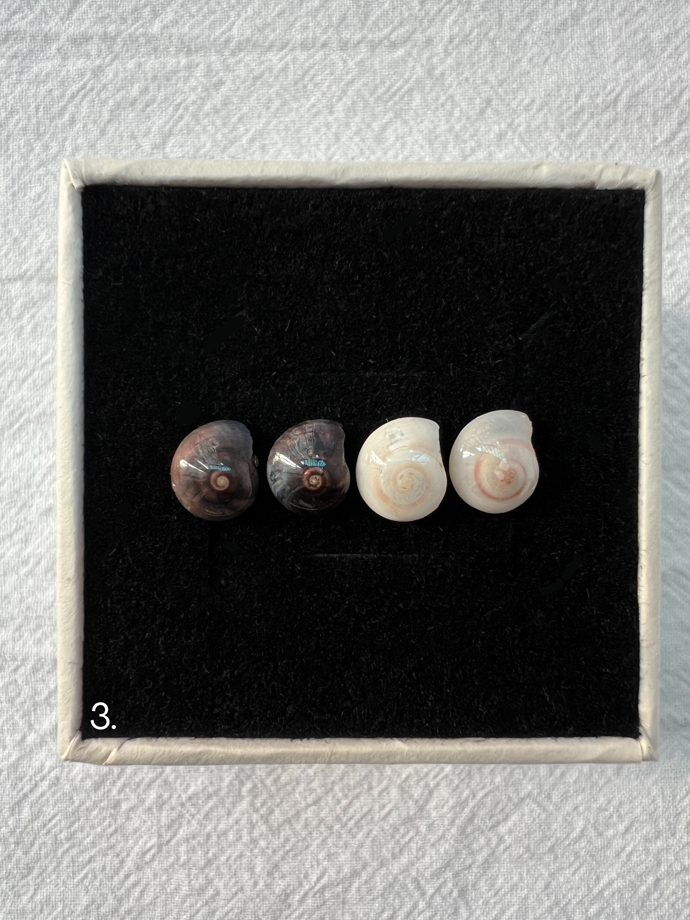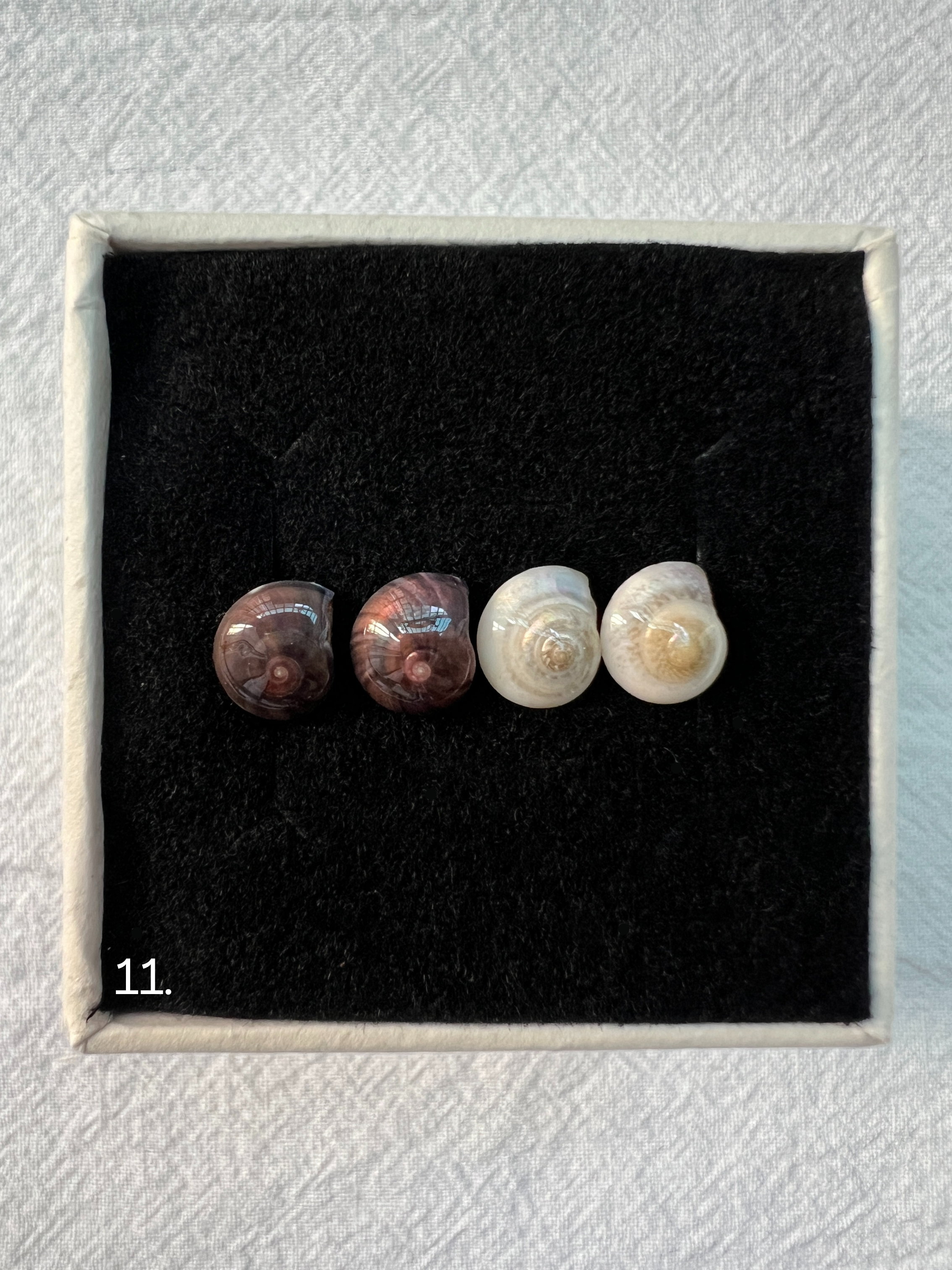 Made with natural seashells (~10mm) and 925 sterling silver posts, each set includes two pairs of earrings and comes packaged in a small gift box.