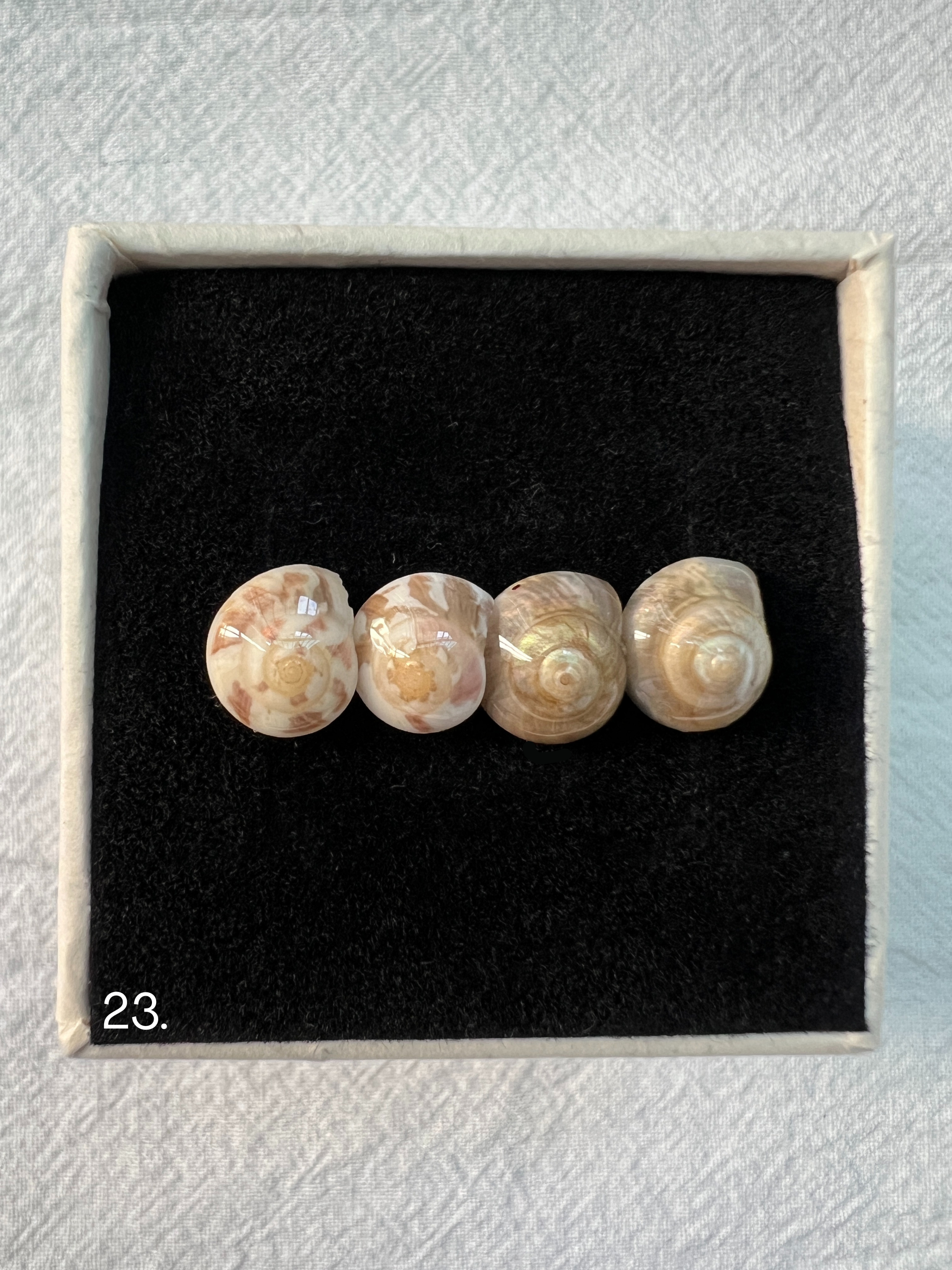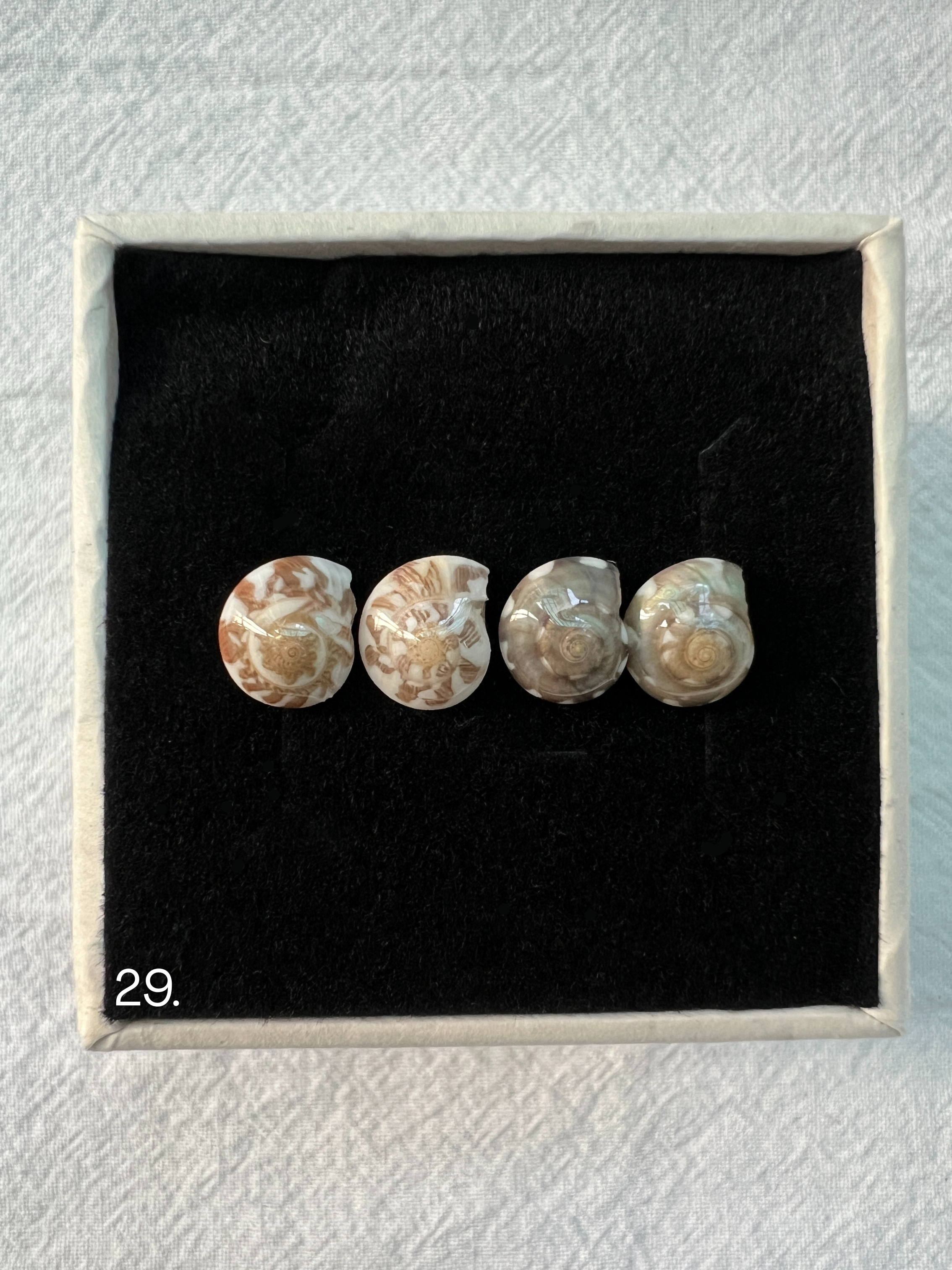 Each small shell is specially treated to enhance its natural shine and to make it stronger and more durable.